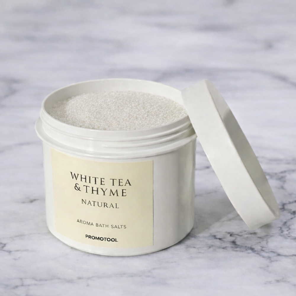 天然精油100%の恵みを凝縮した「WHITE TEA & THYME NATURAL」アロマバスソルト。ミネラル豊富なソルトが、お肌をすこやかに保ちながら、温浴効果を高め、一日の緊張を優しく解きほぐします。湯船に溶けた瞬間から広がる清々しい香りは、まるで森の中の静かなスパにいるような心安らぐ時間をもたらします。